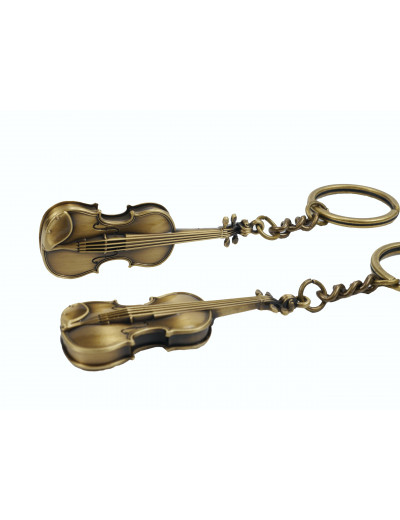 Keyring violin 3D metal 6,5 cm (antique brass)